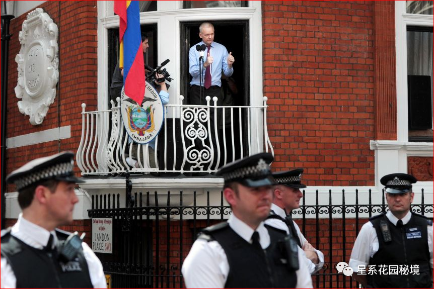 然而,阿桑奇恰好认识了一位伦敦街头会西班牙语的美女律师,这位女侠说通了厄瓜多尔的总统,之后,阿桑奇在英国特工的围追堵截下,逃进了厄国大使馆求得了暂时的安宁;但自从他在此地落脚,伦敦警方年耗费1700万英镑、派出海量人手将使馆团团围住……以至于恐怖袭击发生时都缺乏人手;