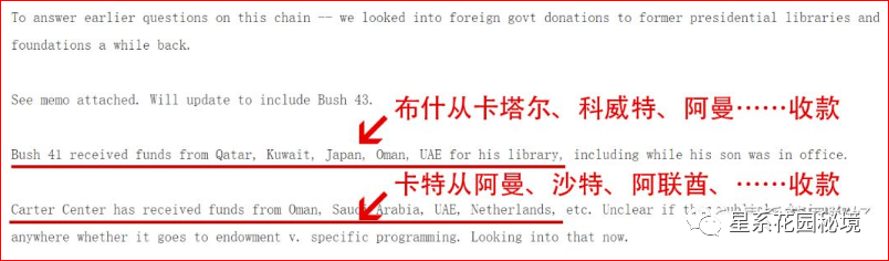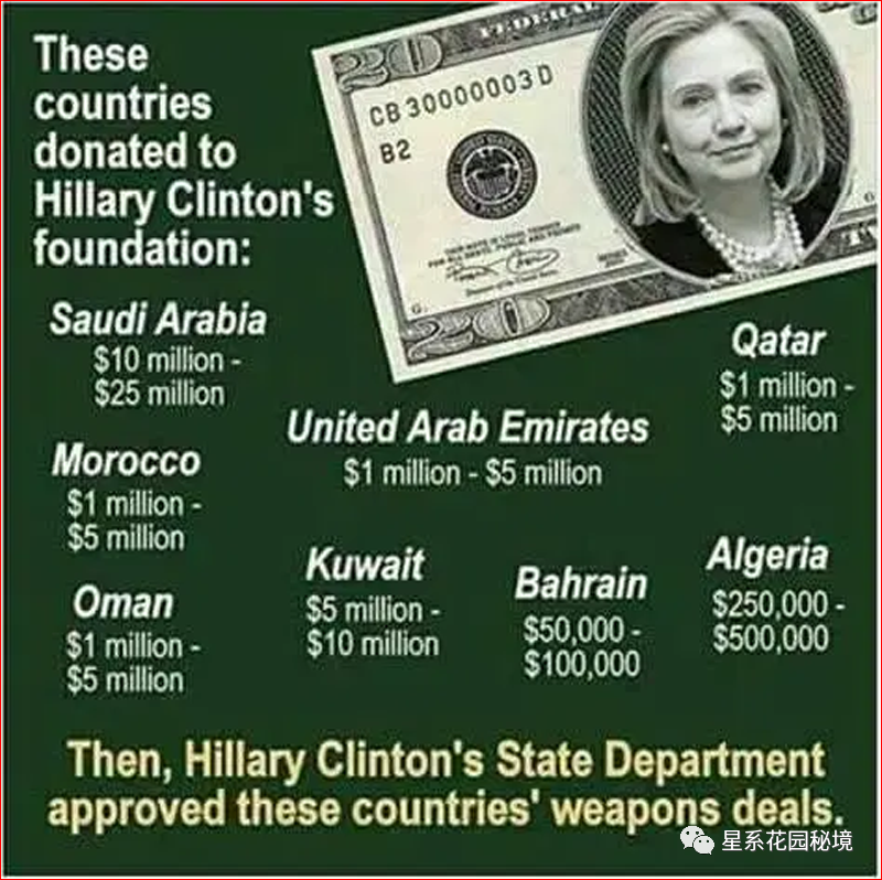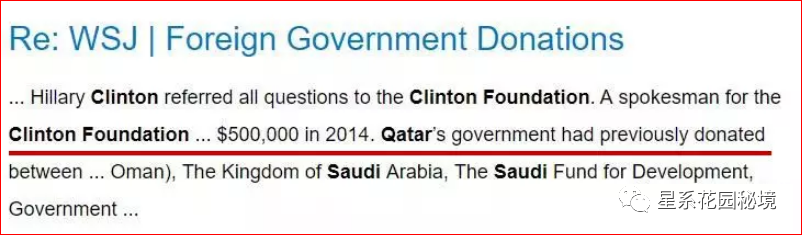 沙特王室给了希拉里运作的克林顿基金会2500万美金,卡塔尔给500万;其他各国政要又通过白宫办公厅主任波德斯塔的弟弟上供;美国瓜众们惊呼,难怪希拉里如此袒护某和平教,难怪总是为恐怖分子开脱罪责;