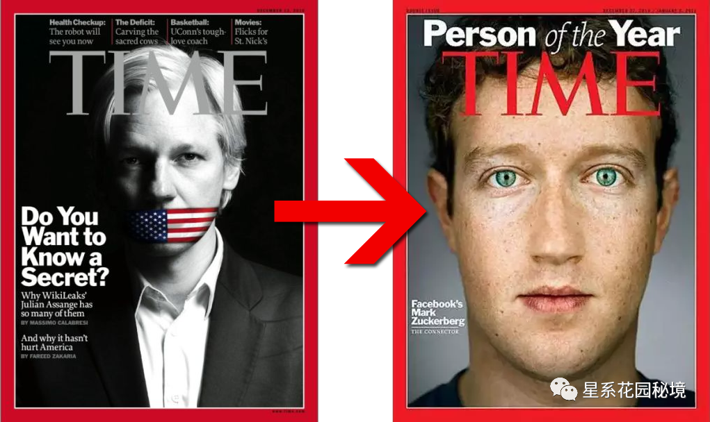 当年发生了一件非常诡异的事情,阿桑奇由于被美国政府通缉而名声鹊起,引得无数老百姓喜欢;而美国时代周刊为了吸流量,搞了个年度人物网络票选,阿桑奇的得票在英语世界高居第一位,可是,这不符合“美式政治正确”,于是,时代周刊临时把一个白左教父扎克伯格的头像挂了上去,被网友们吐槽了好几年……