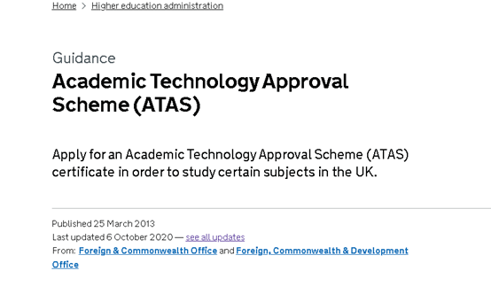 [size=0.36]本指导计划中心内容是指 赴英国学习某些敏感专业或学科,需要提前获得学术技术批准计划(ATAS)证书。