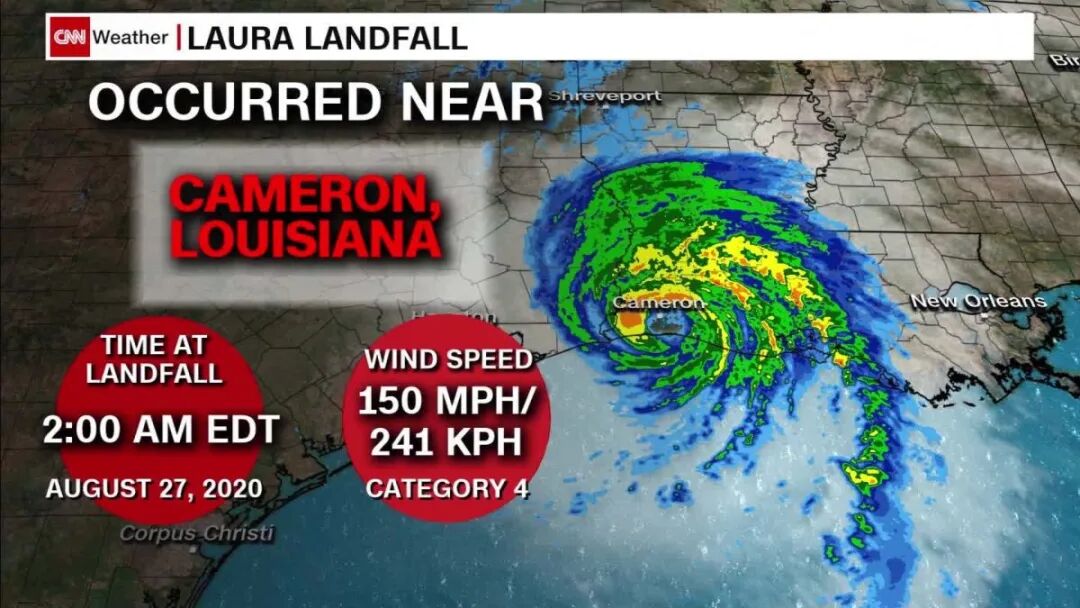 据美国国家飓风中心,劳拉在美国中部时间凌晨1点以150英里/小时(五级飓风是超过157英里/小时)的风速猛烈撞击海岸,在路易斯安那州的Cameron登陆。低洼海岸被海水淹没,气象专家称海水可能有20英尺深,无法生存。